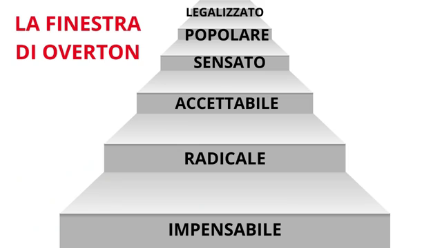 È un modo per cambiare la percezione delle persone. Andiamo nel concreto e vediamo quali sono questi sei passi che formano la finestra di Overton.
