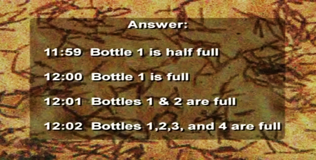 (1) A che ora la bottiglia era mezza piena? Ci credereste alle 11:59, un minuto prima delle 12:00? Perché raddoppiano di numero ogni minuto.